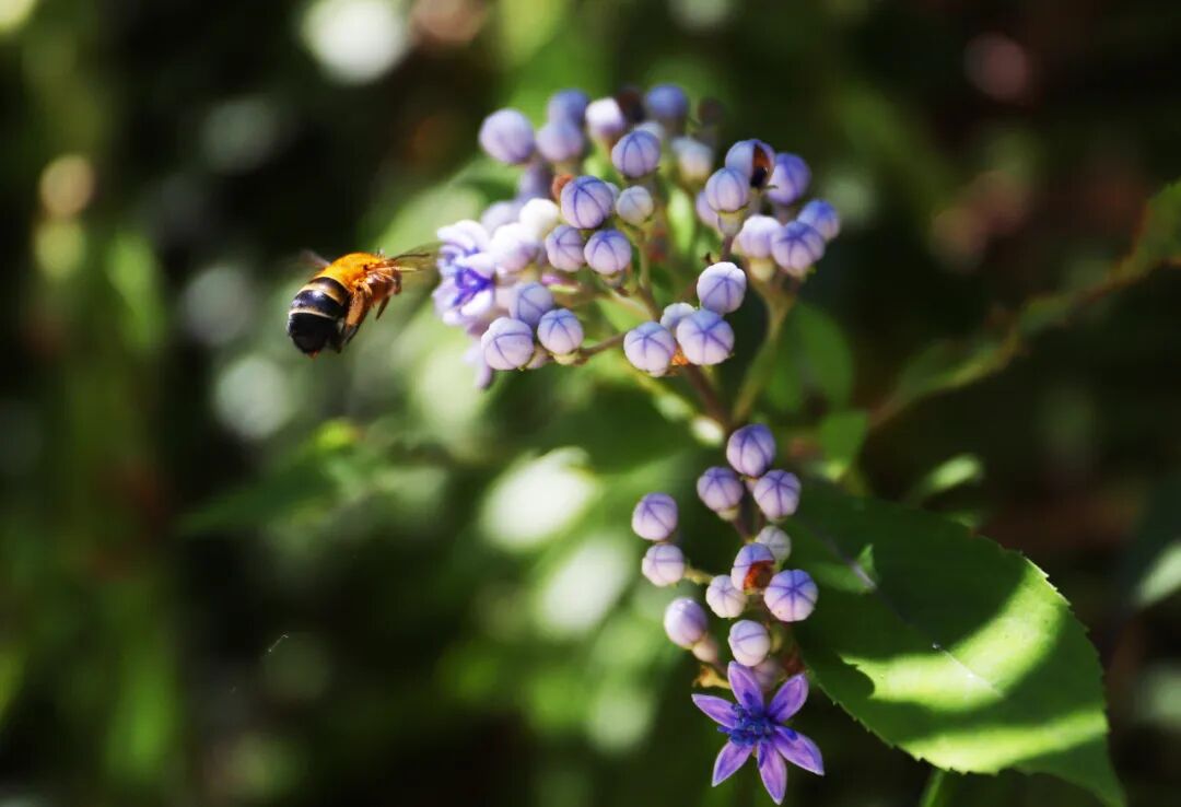 在天井山森林公园里,随处可听到鸟语虫鸣,图为蜜蜂在采花蜜。谢焘 摄