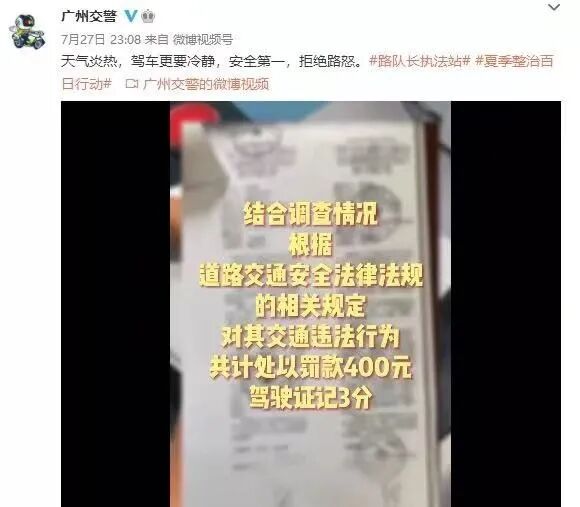 记者了解到,视频拍摄地点位于广州市广园快速路。根据最新进展,广州交警表示已找到涉事车主,结合调查情况,对其交通违法行为,共计处以罚款400元,驾驶证记3分。