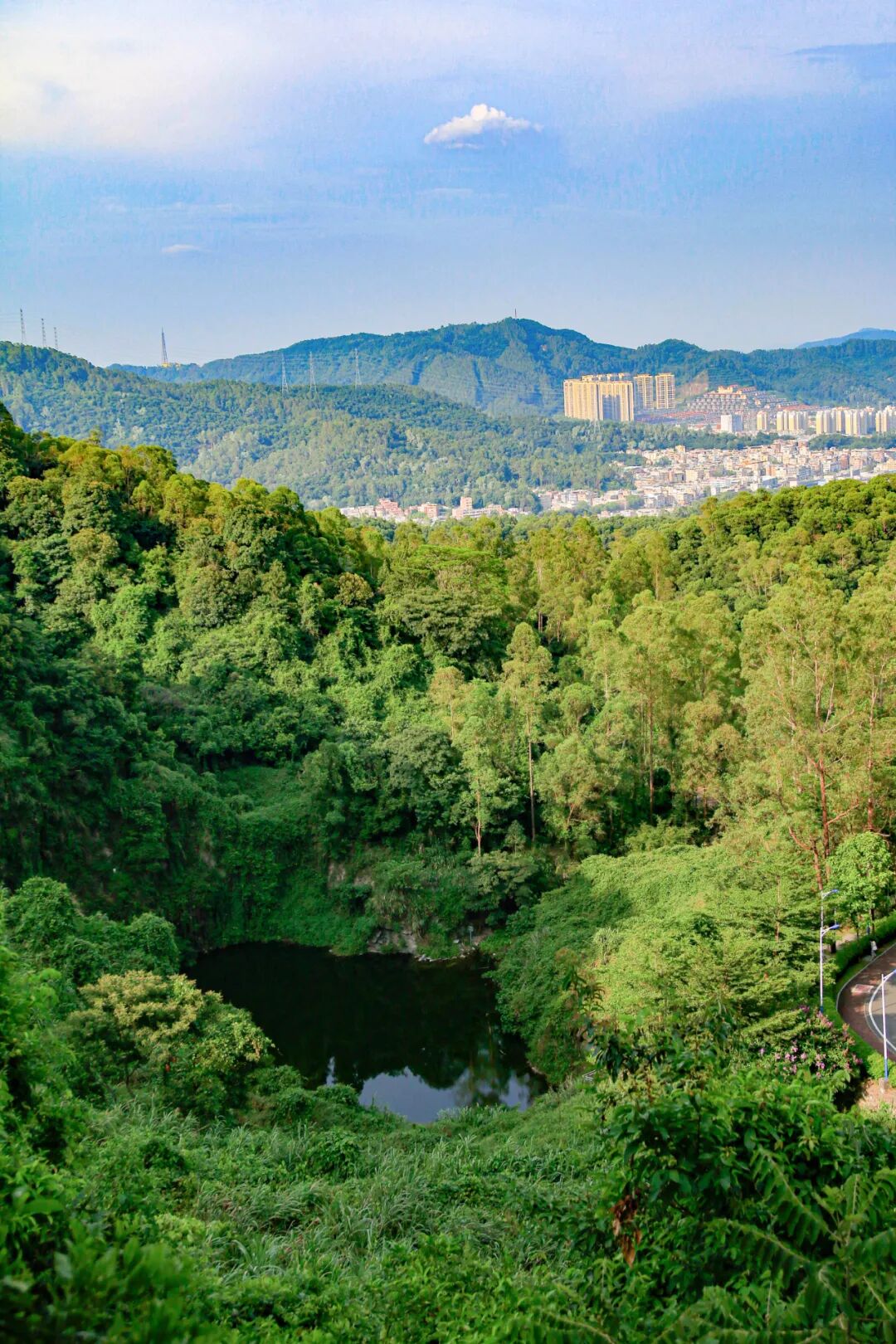 迷雾阻碍了更远处的风景,反转头,柯木塱已经裸露,楼房密密匝匝地卧在青山之怀,予人一种与现实迥异的宁静感。