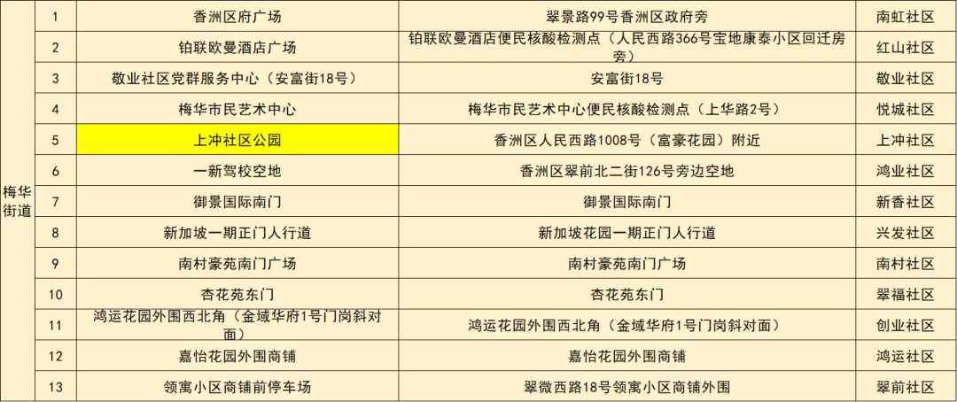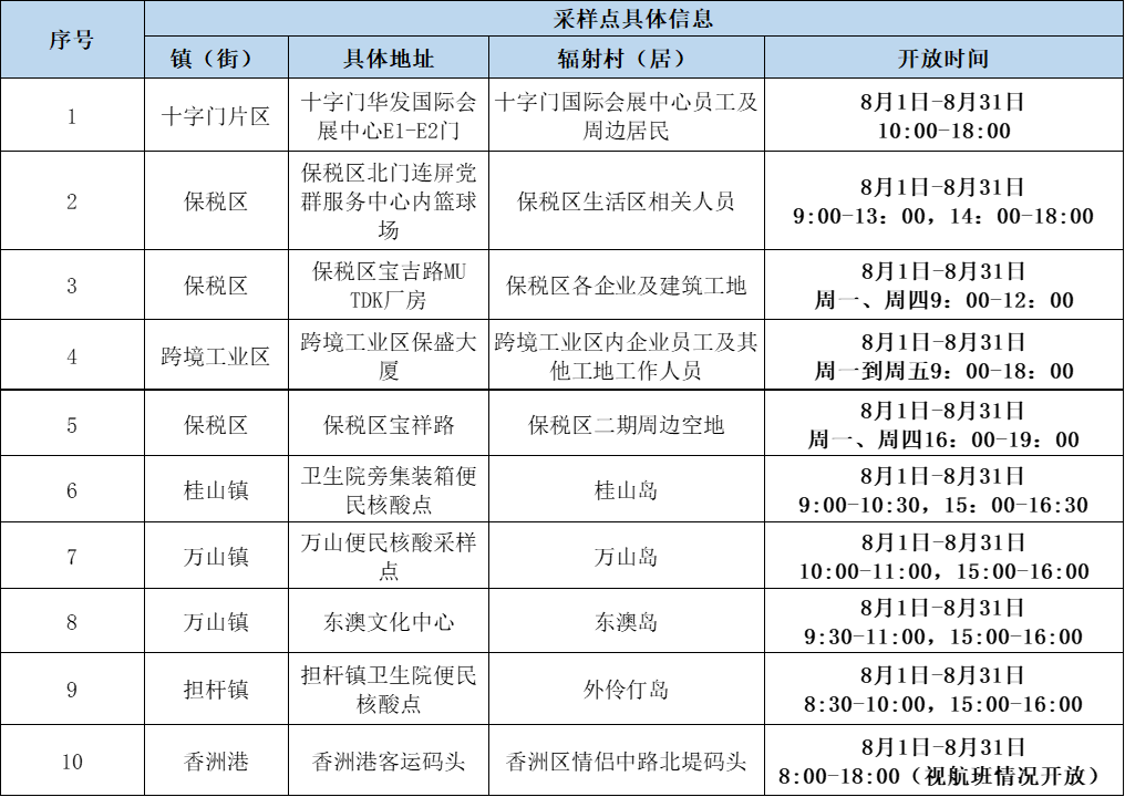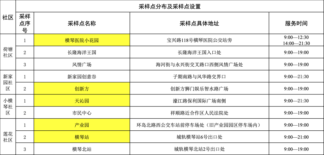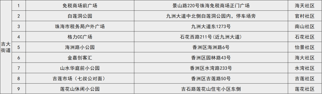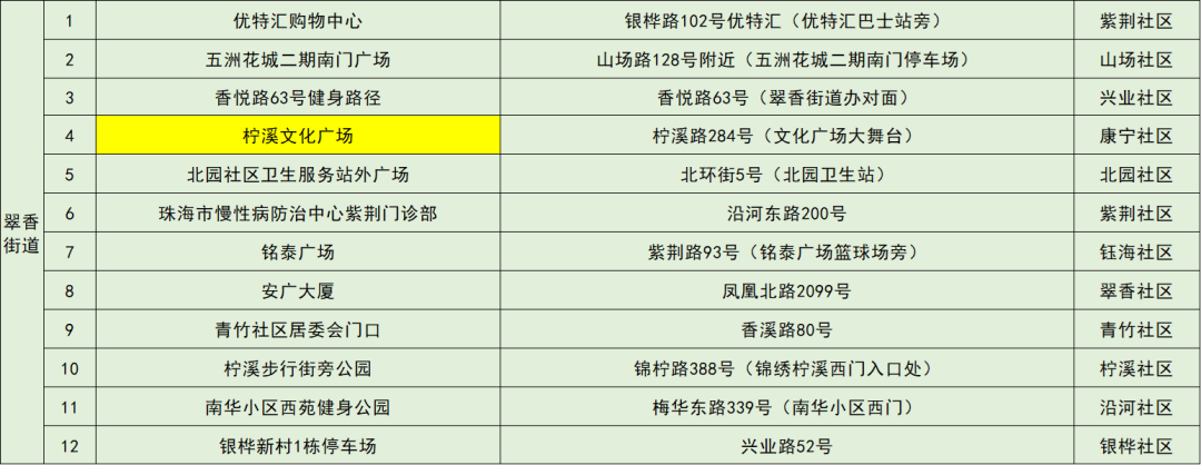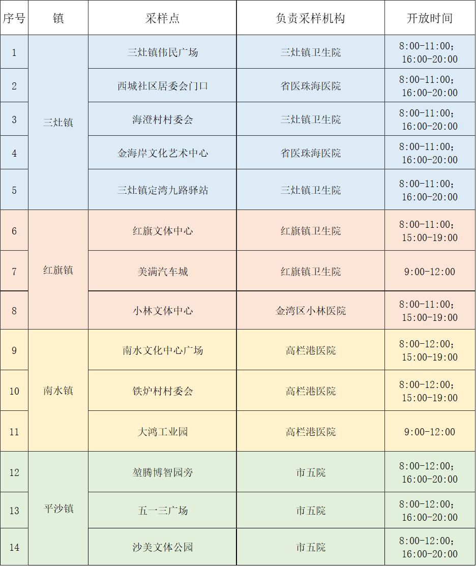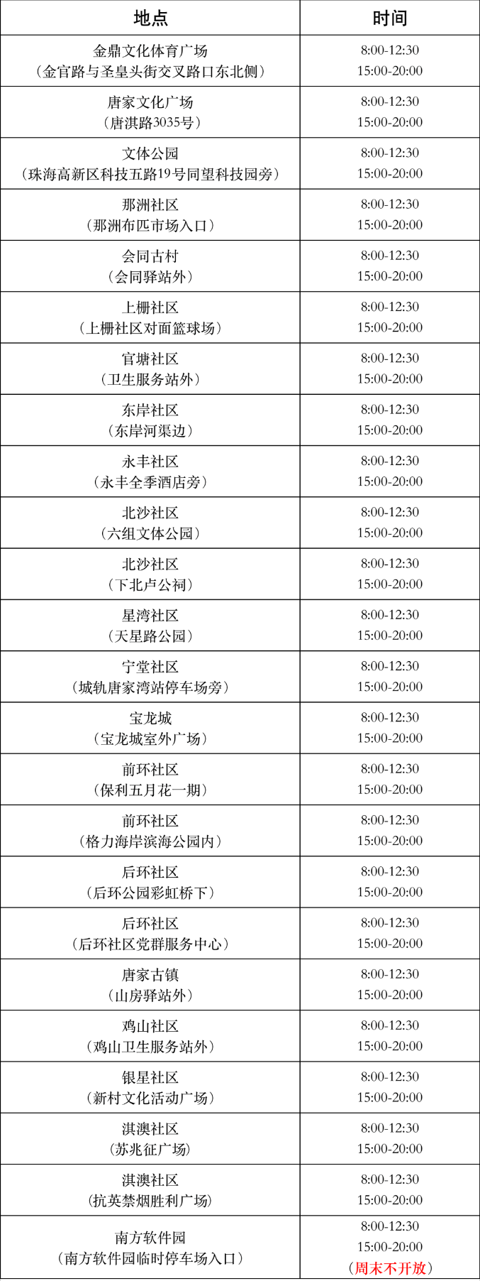 (一)香洲区其他区域的便民核酸采样点正常开放。