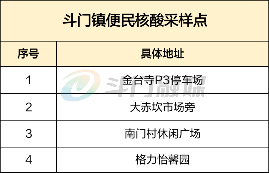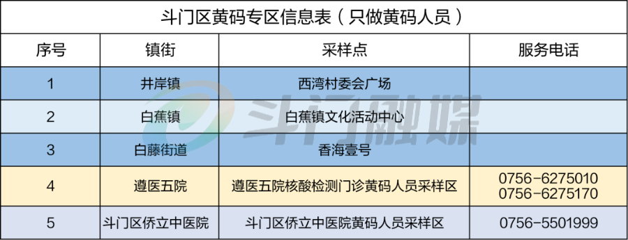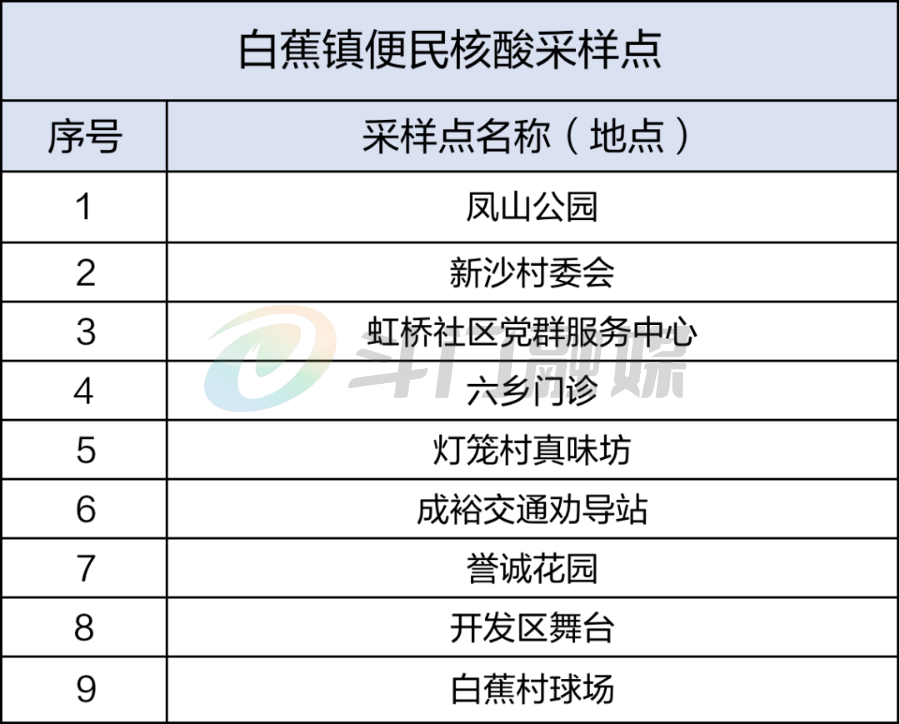 【乾务镇、白蕉镇、斗门镇、白藤街道便民核酸采样点】