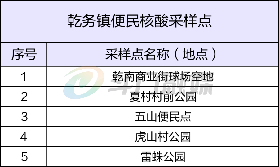 乾务镇新增荔山便民核酸点和马山便民核酸点。