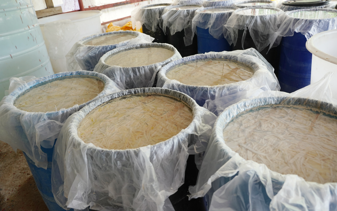 “现在已经进入采笋季,预估今年产值约为60万元,目前绝大部分是订单式销售,一小部分是网上销售,主要销往贺州、四会、佛山、柳州等地。”怀集县怀城街道燕乡农产品加工厂负责人赵健三表示,每年竹笋采收期是7至9月份,今年已经是第7年的采笋季,由于今年受天气影响,产量估计为20万斤左右,由于竹笋质量上佳,经过初加工成酸笋后,热销两广各地,订单供不应求。