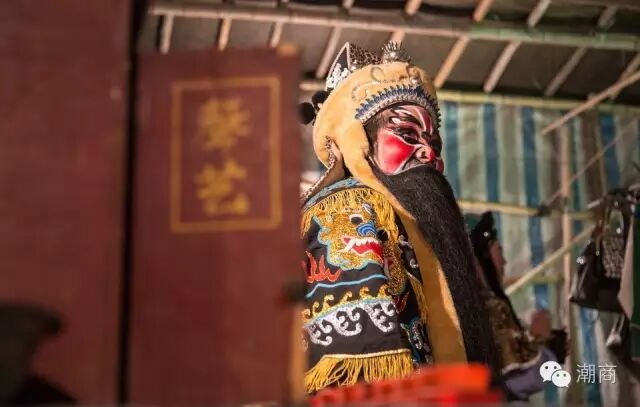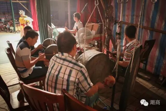 斯卡思笔下所记载的潮剧演出场景与现今潮剧在潮汕农村地区的演出并没有太大的区别。他描写到,演出潮剧的戏台被临时搭建在一个小庙(妈屿天后宫,1848年重建)前方的空地上,空地中间有一棵枝叶繁茂的大榕树,“榕树的枝叶甚至大到可以遮盖住一个骑兵团”。戏台两边有两根高高耸立的竹子做的旗杆,中间挂了一块黄色的条幅。在空地的一侧还搭建了一个专门供女性观众使用的竹棚。斯卡思注意到,与英国的戏剧演出时乐队出现在戏台上面不同,潮剧的乐队被安排在戏台后面观众看不到的地方。戏台的后方是演员化妆和休息的地方,就是所谓的后台。演员的行头和道具被打包在一个个漆着俗气颜色的大箱子里,后台还有一些箱式椅子,有的用于煮饭,有的用于洗漱和化妆。如此杂乱的环境,使得斯卡思认为潮剧的后台是“一个既肮脏又阴暗的地方”。从斯卡思这一评价,反映出当时潮剧演员工作环境的恶劣,但同时也让我们看到了演员对潮剧的坚持与热爱。