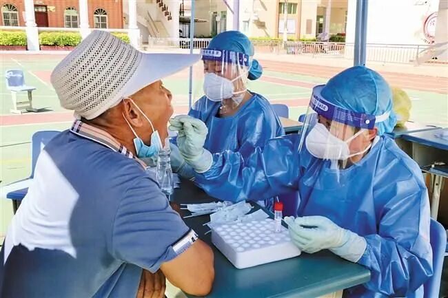 ▲医护人员上门为长者提供核酸采样服务