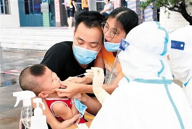▲家长带着小孩参加核酸采样