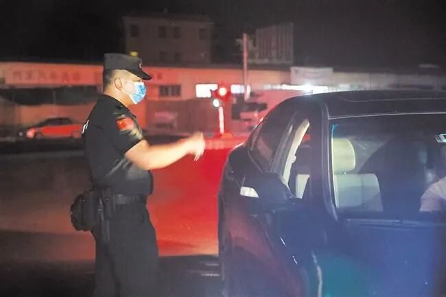 ▲凌晨三时,抗疫工作人员在陇田镇封控区路口设卡