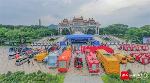顺德应急5G集群应急指挥车启动仪式暨应急救援力量集结点验活动在顺峰山公园进行。