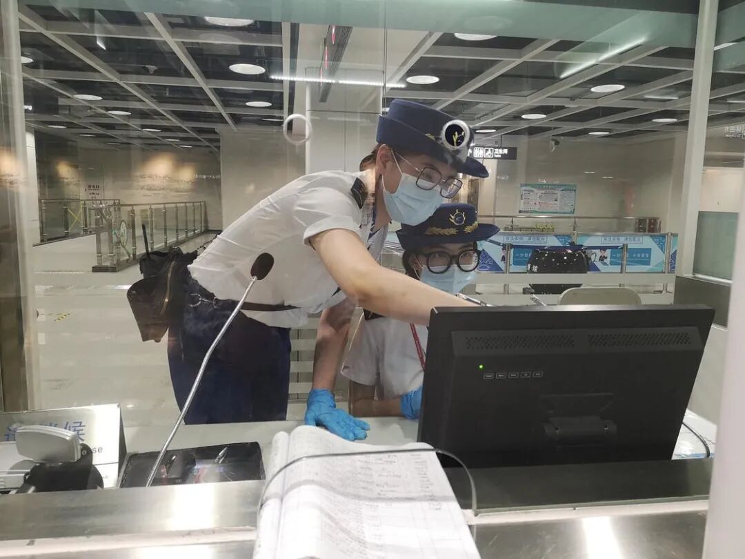 刘亚琳和同事在服务台核对信息。