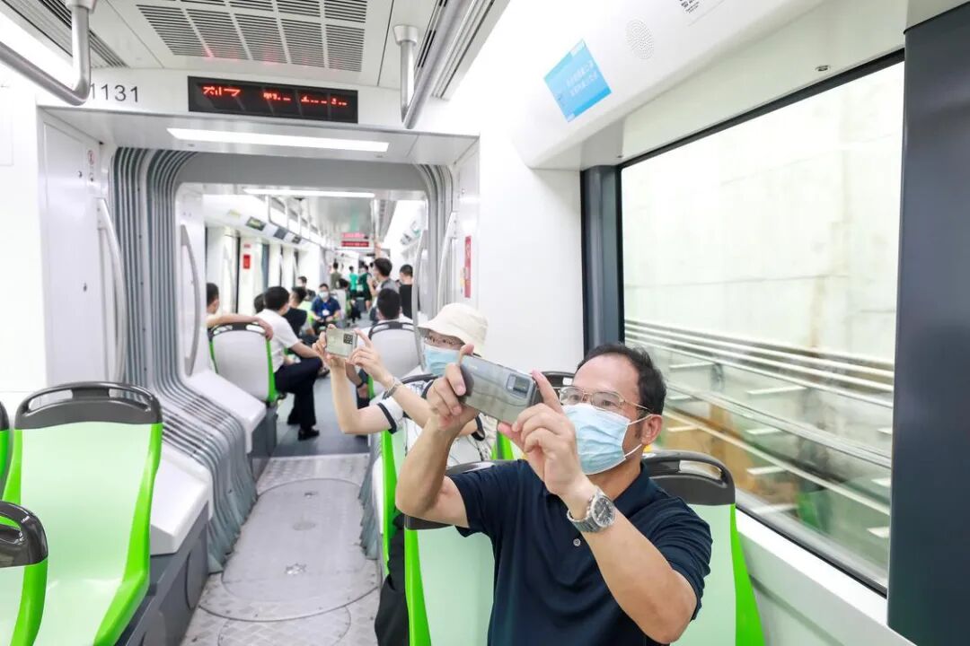 2021年8月18日,南海有轨电车1号线首通段开通运营,市民拍照记录历史时刻。珠江时报全媒体记者/方智恒 摄