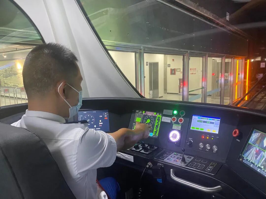 首班车发车之前,梁绍荣还有一件大事要做——进行约50分钟的车辆“体检”。这项“体检”多而细:看外观,车轮盖板是否严实、车门能否闭合;查车厢,设备柜门是否锁好、车厢清洁是否到位;再到他工作的驾驶室,检查设备功能、开关位置及监控设备等,对列车进行检查的目的是确保车辆无异常、减少行车危险。