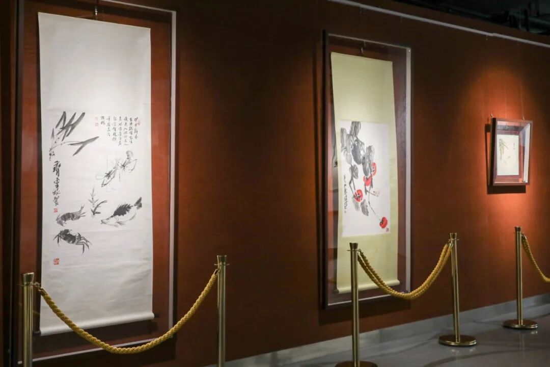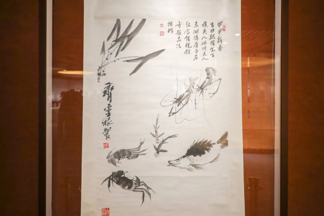 齐白石真迹《虾蟹图轴》和家族几代对绘虾的传承和变革创作集体亮相,并由齐白石嫡传后人齐思玉亲自对白石老人的真迹进行导览赏析。齐白石画虾是家喻户晓的故事,他在画虾技法上不断探索,对虾的观察、研究和创作贯穿了一生。从白石老人早年临摹古人到写生自然,他一步步提炼与升华,融会贯通形成自己独特的艺术风格,其绘画技艺出神入化进而达到返璞归真的境界。展览也展出了另外两位嫡传后人的著作和创作作品:齐驸博士《齐白石画虾流变考》的研究成果,以及齐艳喜让人叹为观止、长达13米的《百龙图》。
