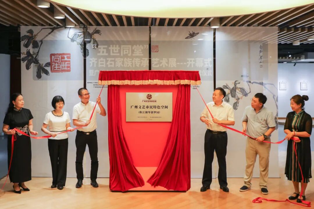 8月19日,“五世同堂”——齐白石家族传承艺术展开幕式暨广州文艺市民特色空间(珠江钢琴创梦园)揭牌仪式在广州市荔湾区珠江钢琴创梦园举行。本次活动由广州市文学艺术界联合会、南方报业传媒集团289艺术、广州市荔湾区文学艺术界联合会指导,齐白石艺术中心、广州微充氧版权服务有限公司、广州珠江钢琴文化园区运营管理有限公司联合主办。