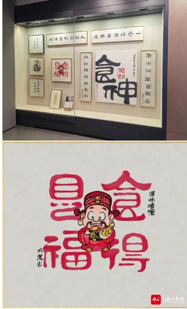 大虎是顺德凤厨职业技能培训学校的校长,其“国漫风”书画作品是运用国画线条和着色,结合漫画的造型和表情,创作出有生动有趣且富有传统底蕴的艺术风格。例如《食得是福》是书法+国漫画代表作,什么都能吃、都吃得香,那就是福气。《食神驾到》是国漫风书法的代表作,食神二字成为观众拍照的焦点。目前,这些作品已被人全部认购,其中包括在加拿大开顺德菜餐厅的潘先生。