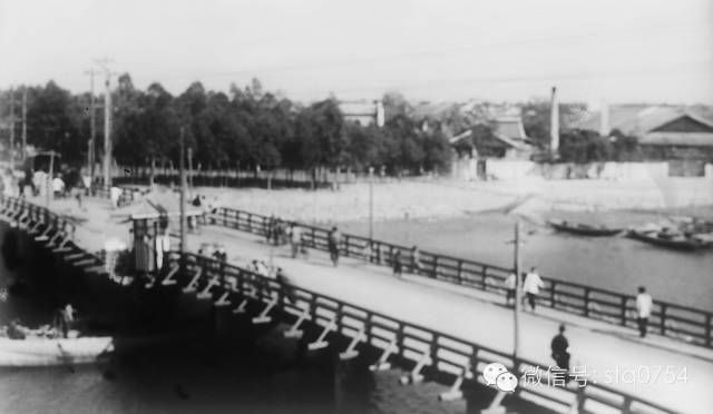汕头解放初期市区原有的光华桥,当时为木结构。1964年1月,改建为钢筋混凝土高桩承台T型梁结构。摄于1961年