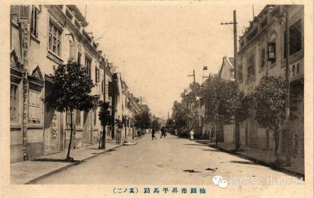 早年升平路的景观。抗日战争前,整个汕头城市约有大小商行、店铺三千多家,其中“四永一升平”就占了将近三分之一。一九二○年代明信片。日本印制,出版者不详。