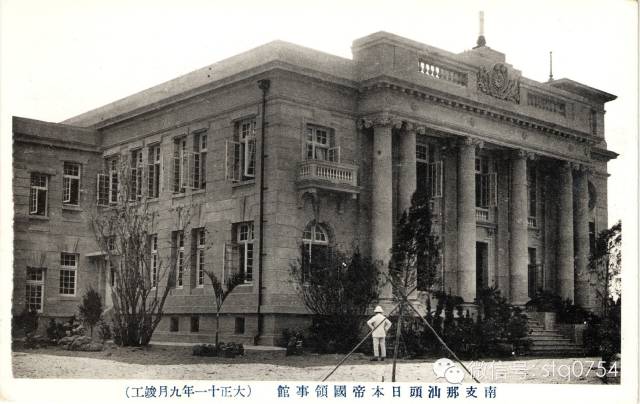 位于今大华路的日本领事馆新馆舍,于一九二二年(大正十一年)九月正式竣工。一九二〇年代明信片,属于汕头日本人会俱乐部所发行的《汕头风景》系列明信片中的一幅。