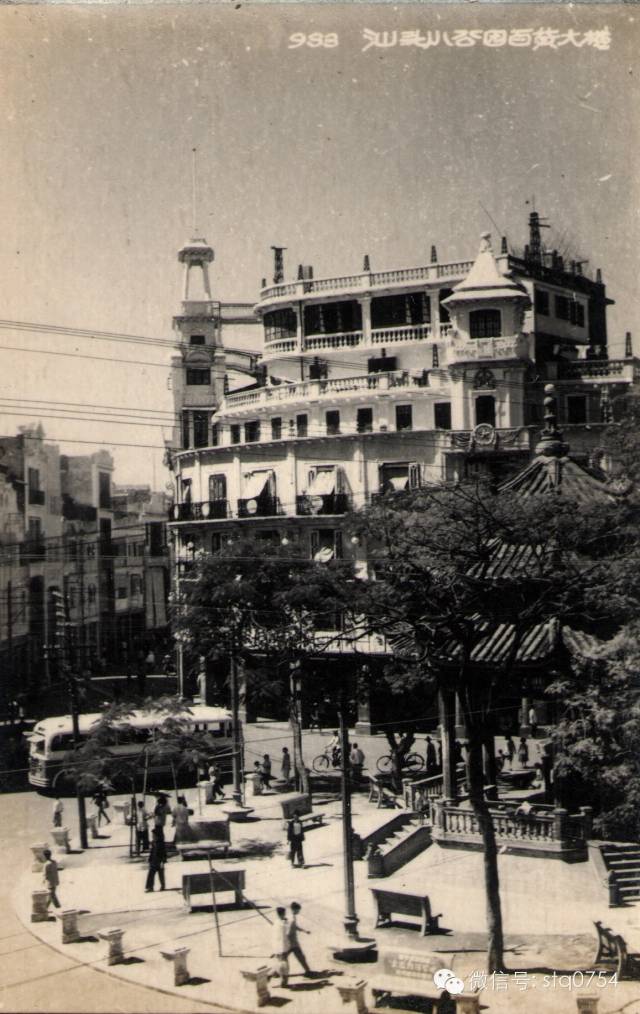 汕头小公园百货大楼。小公园中央的“中山纪念亭”,始建于一九三四年。摄于1950年