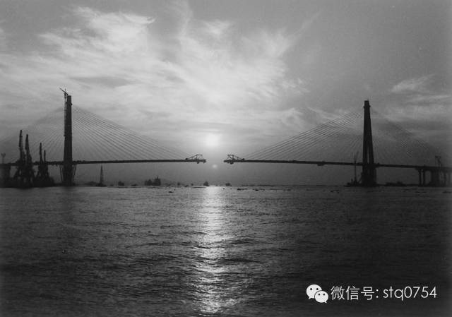 “双龙拱珠”——1998年9月礐石大桥工程建设合拢前夕的雄姿。