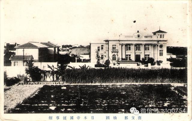 日本驻汕领事馆新馆舍。一九二〇年代明信片,日本大阪神田原色印刷所印行。
