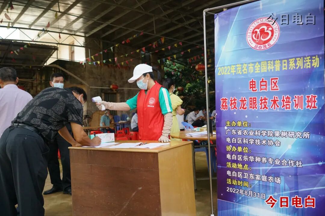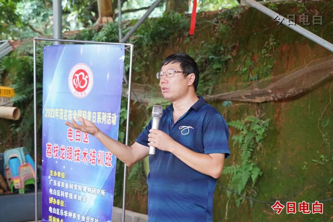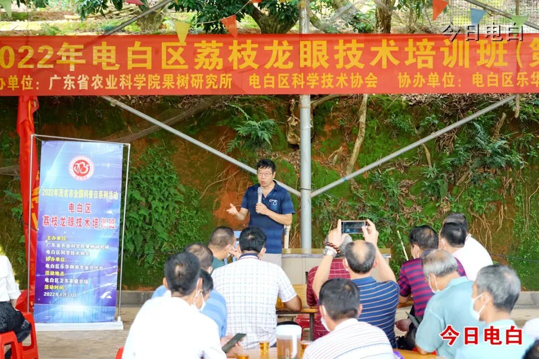 8月31日,电白区科协联合广东省农科院果树研究所在沙院镇卫东农场举办2022年电白区荔枝、龙眼技术培训班,切实解决群众荔枝、龙眼种植管理粗放、经济效益提升缓慢的问题,送科技下乡,促群众增收。
