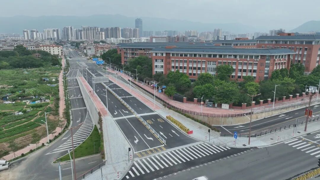 据悉,祥福路北起端州二路,南至江滨堤路,道路总长约700米,宽度38米,双向6车道,设计车速40km/h。道路串联起东西走向的端州二路、建设一路和江滨堤路,并连接肇庆一中南北门前的堤下路,为师生和家长出行带来便利。