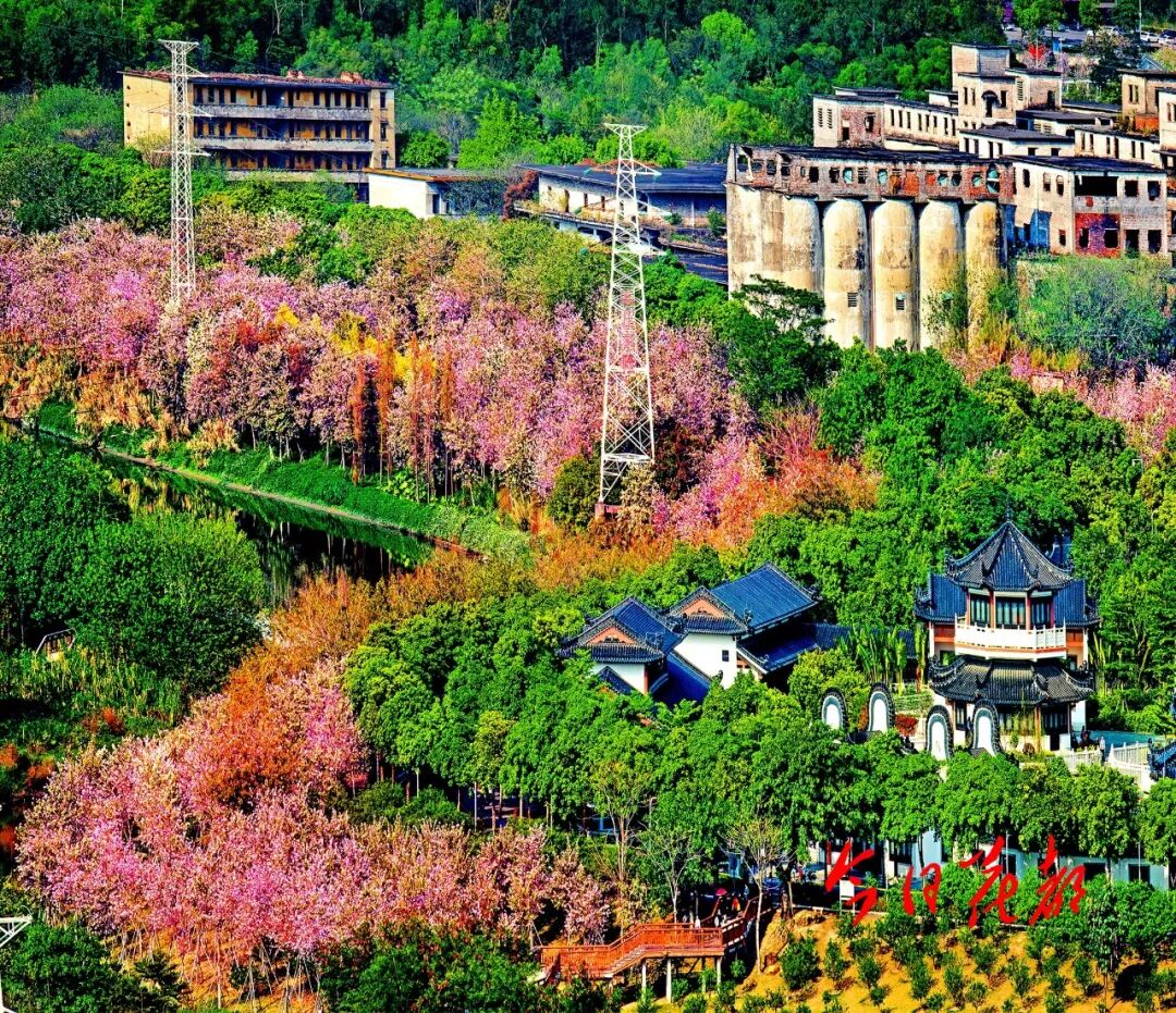 让人流连忘返的还有桃花湾,1000多株桃树花满枝头、娇艳欲滴。一阵微风吹过,落英缤纷。