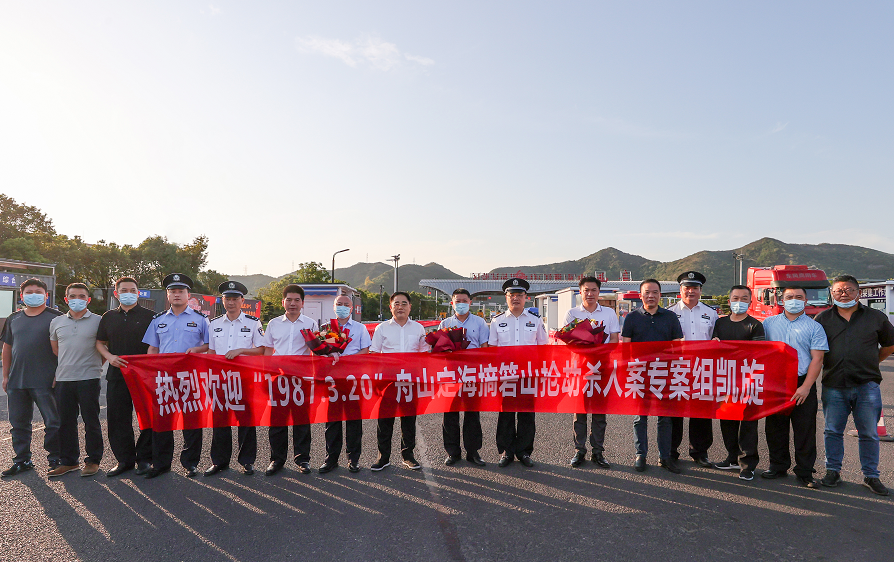 9月7日下午,舟山市委政法委负责同志到舟山跨海大桥双桥出口迎接专案组凯旋,向参与侦破、抓捕的专案民警致以诚挚慰问。