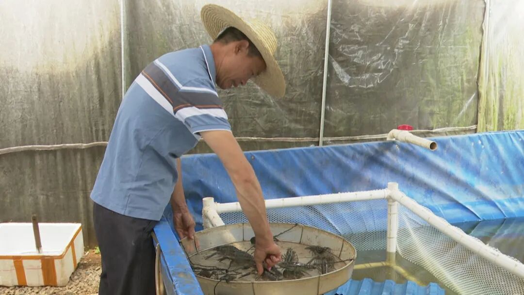 清连村党总支部书记李瑞林:“澳洲淡水龙虾和小龙虾相比性价比更高,出肉率高,小龙虾是2—3成,它是4—5成。如果是5—8厘米的虾苗,水温达到20多度的情况下,养两个多月就可以上市,产量养得好的话每亩有500斤。”