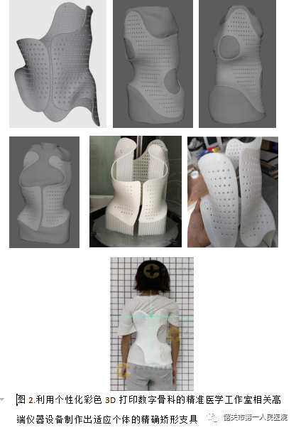 市一医院首个“广东省博士工作站”由留美博士胡争波主任团队建立,可通过彩色3D打印数字骨科技术,为患者订制个性化、精确化的脊柱侧弯矫形支具进行保守治疗,该技术平台的独特性在于:1.材料选择的多样性,可以根据不同的治疗目的及患者的要求选择不同软材料和硬材料制作。2.能够快速制作,简便易成型,既符合人体工学特点,又轻便舒适合体,患者配戴的依从性更好,这对儿童人群尤为重要。3.联合生物力学分析软件分析设计可以得到更加符合生物力学的支具。4.个体化矫形支具、截瘫支具、截肢假体支具对患者的日常生活活动能力及步行能力的改善效果显著。