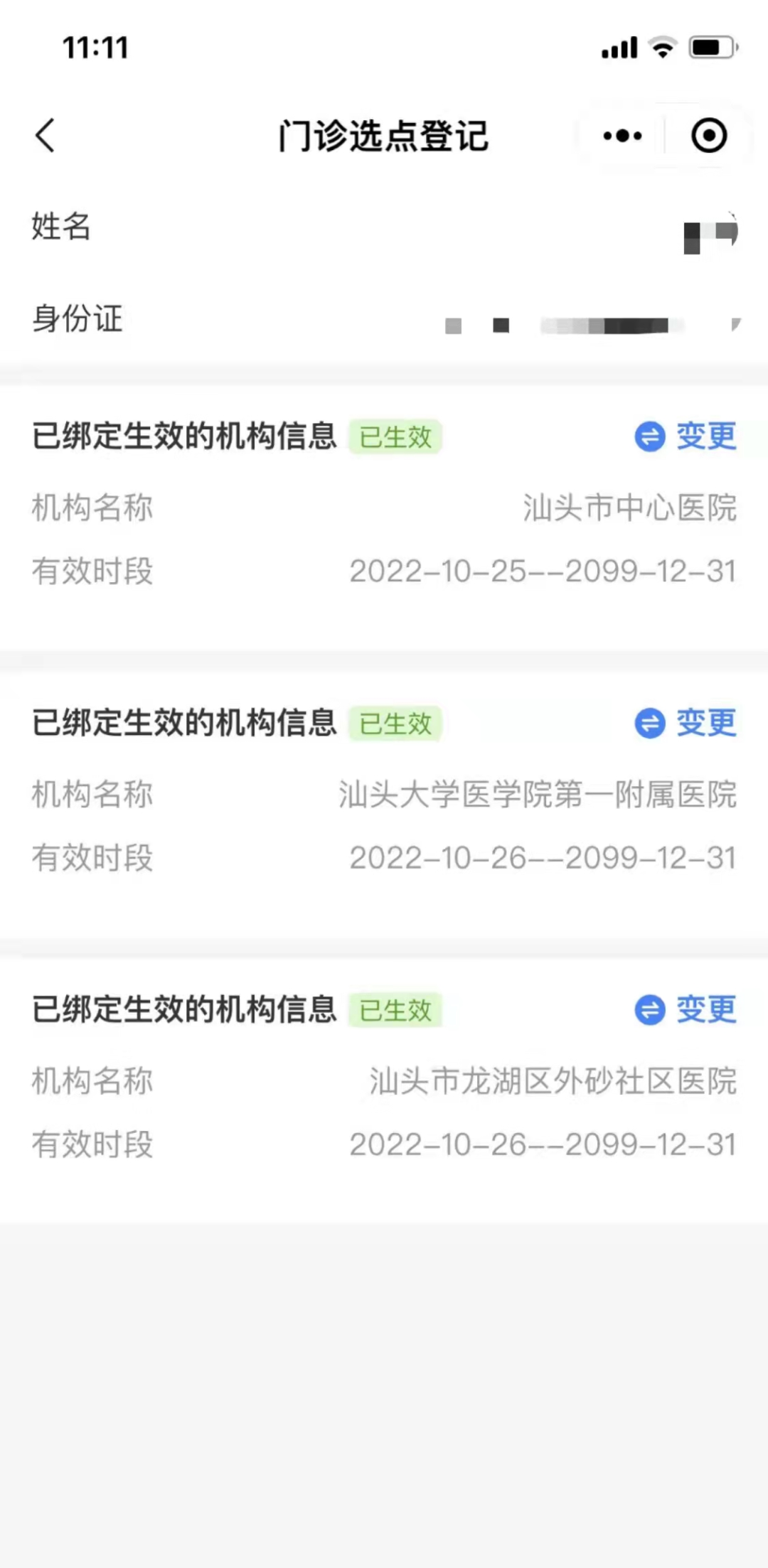 4. 提交信息,选点业务为秒批业务,即刻生效,可以在界面看到自己所选的选点医疗机构。定点生效时间如不做变更的,选点一直有效。