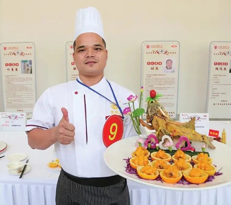 在本次决赛中,海龙阁酒家厨师长戴滔凭借一道《黄金橙香鱼柳》脱颖而出,获得评委一致好评。