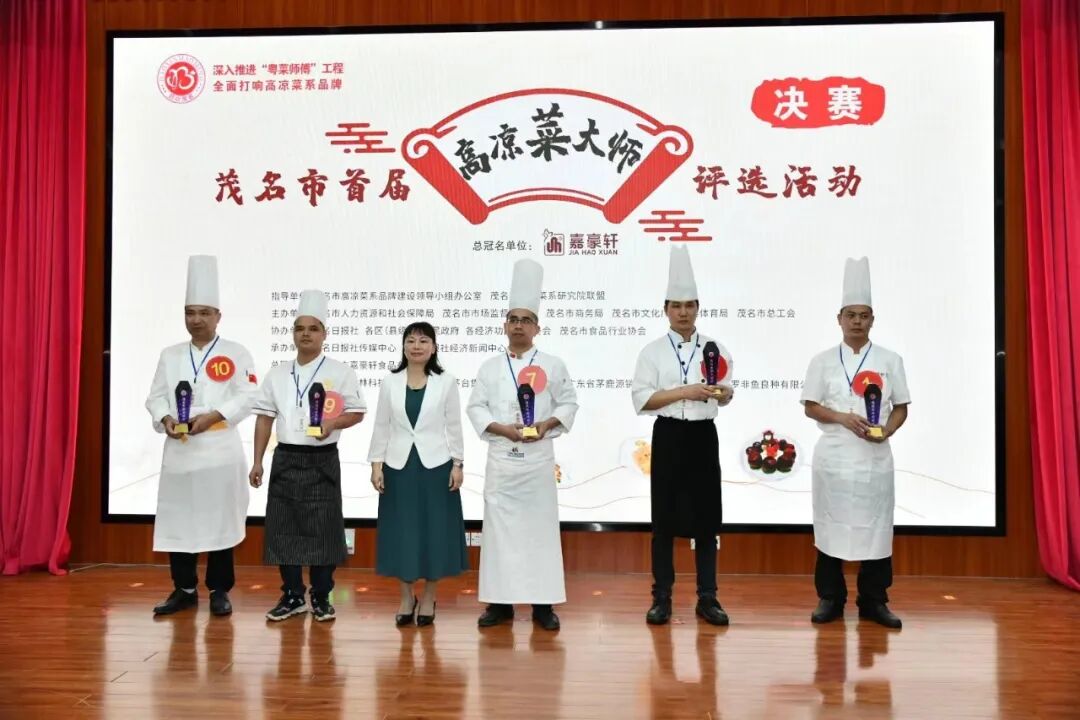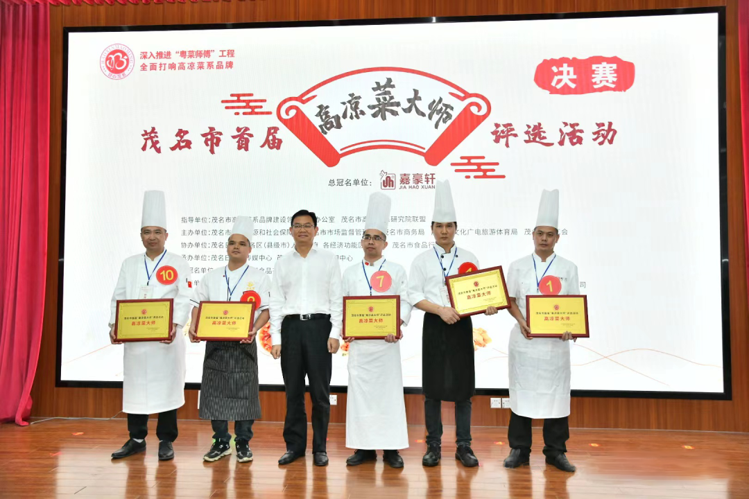 ▲茂名市市长王雄飞为获得“高凉菜大师”选手颁奖