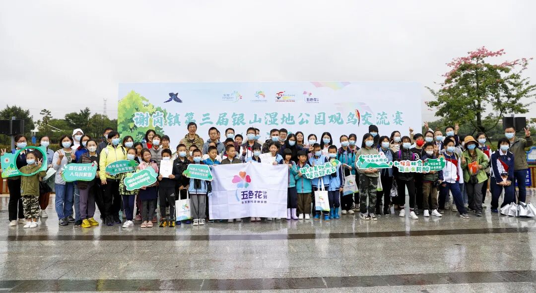 为加强广深莞惠城市间在生态环境保护领域的联系,搭建沟通和交流的平台,11月6日,谢岗镇第三届银山湿地公园观鸟交流赛(大湾区)在谢岗镇银山湿地公园举行。活动以“五色花计划——‘观’爱鸟类 绿色有约”为主题,20支来自大湾区中小学的观鸟队,共80多名学生和家长在银山湿地公园一起切磋观鸟技能,共同探讨观鸟知识,彼此分享观鸟乐趣。