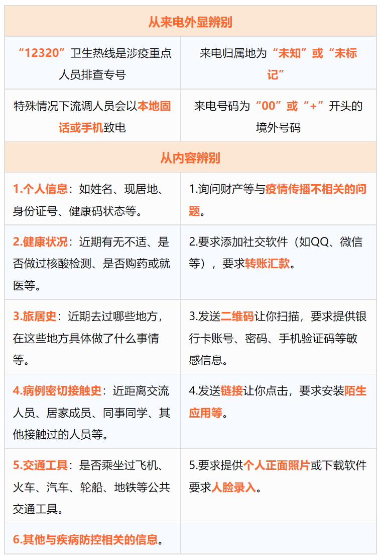 广大市民在积极配合疫情防控工作的同时,也要提高警惕注意辨别流调电话与诈骗电话,一表速览,教你辨别