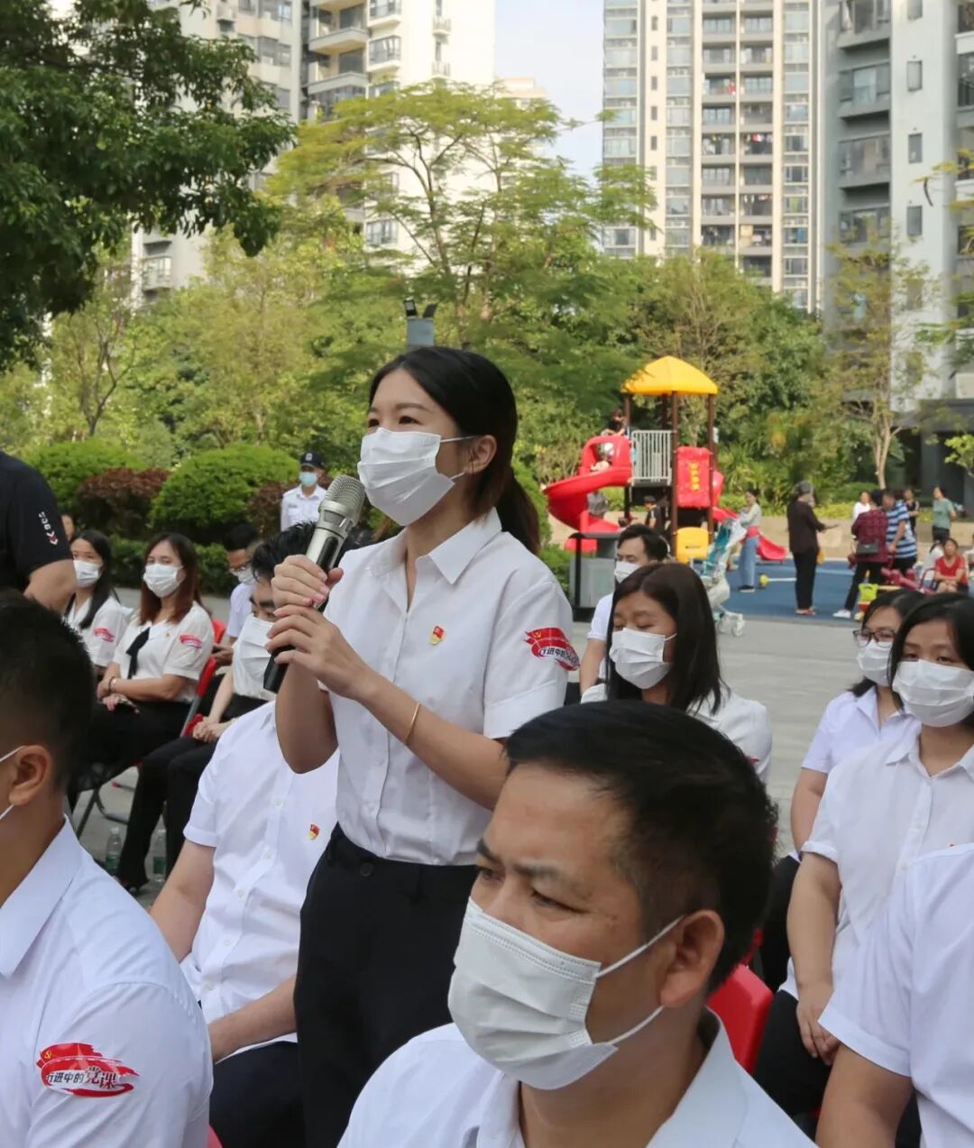陈建明介绍:“万科碧海蓝湾花园小区是万科打造水乡片区首个54万m²大型岭南社区,入住常活动人数5000多人。小区住户较多,事务复杂繁多,我们始终坚持以党建引领小区治理这个原则,我们坚持发动党员志愿服务者发挥‘领头羊’、主心骨作用,带动志愿者的服务热情,维护居民共同利益,提升小区品质,让物业小区和谐建设更有影响力。”