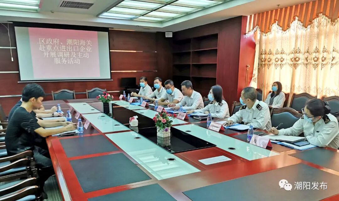 11月21日上午,区委常委、副区长游坤色带领潮阳海关到重点进出口企业广东七彩飞霞针织实业有限公司调研,与企业负责人亲切座谈,为企业在技术升级改造、通关等方面提供服务,扶持企业发展。