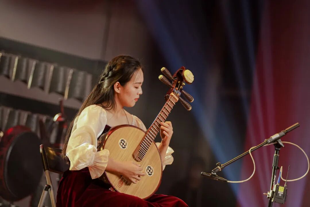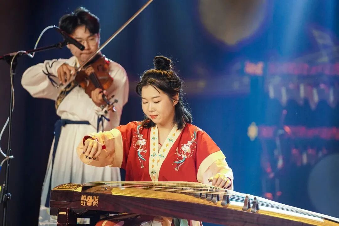 决赛现场,笛声悠扬、丝弦婉转、竹音清绝,10强选手纷纷运用手中的二胡、古筝、竹笛、琵琶、云锣等多种民族器乐竞秀才艺。