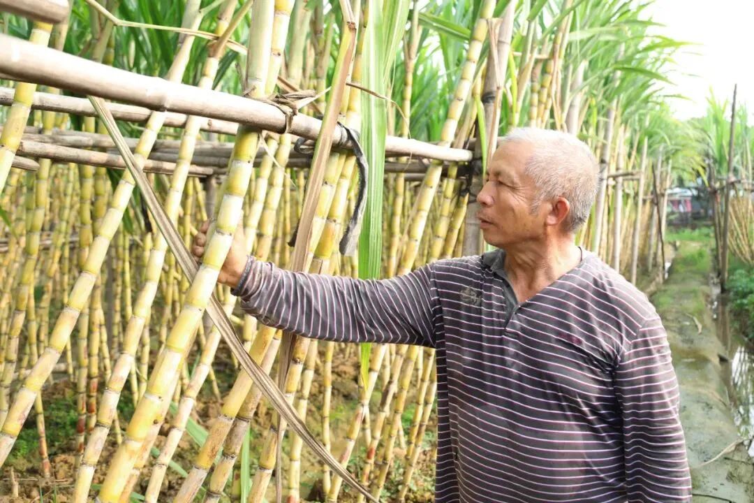 结束了上午的环卫工作,蔗农陈沛祥来到甘蔗地里为甘蔗收成做准备。年近七旬的陈沛祥是中堂凤冲人,种植甘蔗已有十余年,他每天都会抽空到甘蔗地里走走,查看甘蔗的生长情况,修整多余的甘蔗叶,给甘蔗浇水施肥。