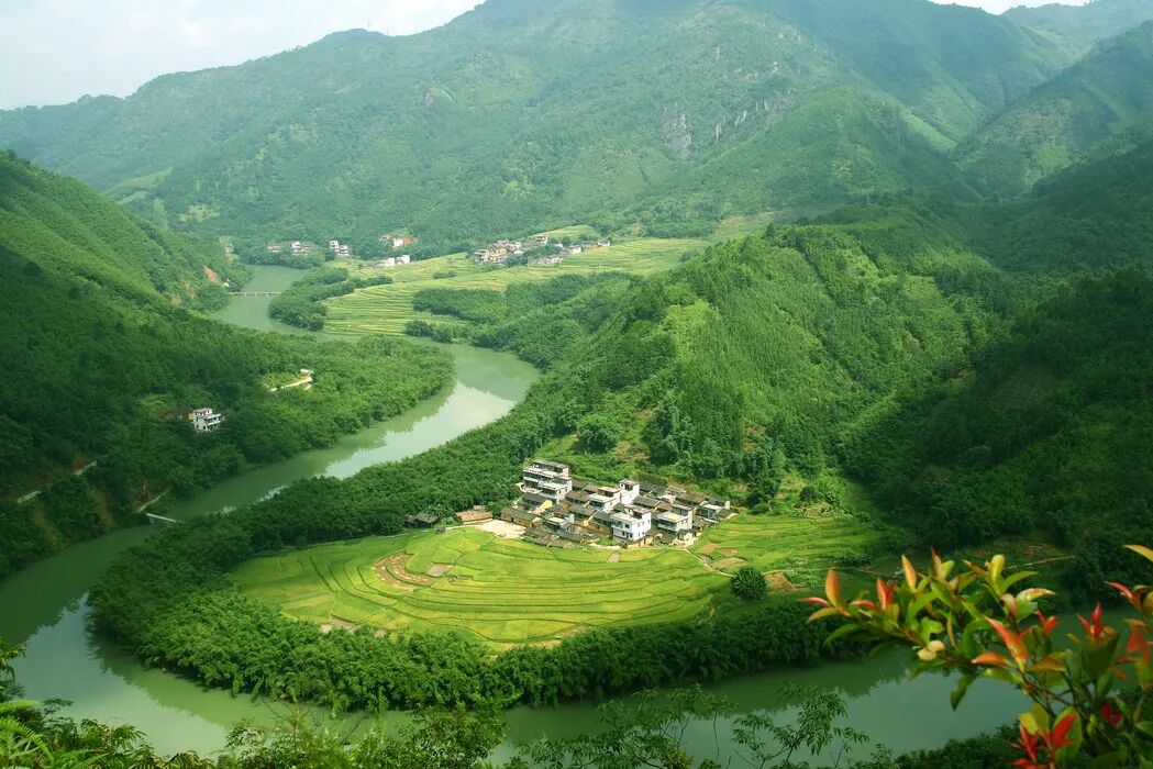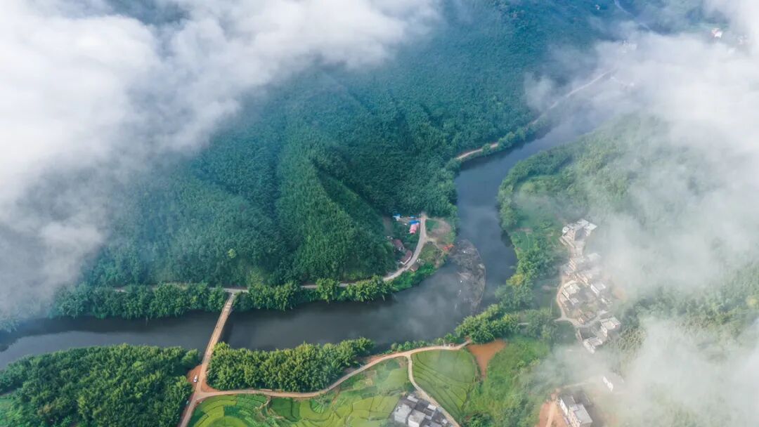 田园风光、九曲十八弯的古水河,