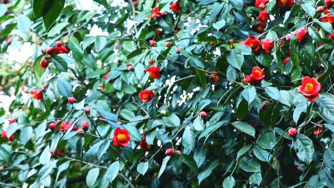 连片数千亩野生红花油茶树林,