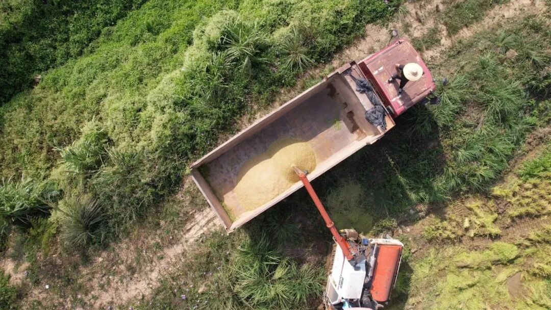 粮食安全是“国之大者”。党的二十大报告明确,全方位夯实粮食安全根基,牢牢守住十八亿亩耕地红线。华南农业大学和广东兆华种业有限公司联合在东源县锡场镇林禾村推广种植优质香型丝苗米,近日迎来了收成,田间地头依然是一派丰收景象。