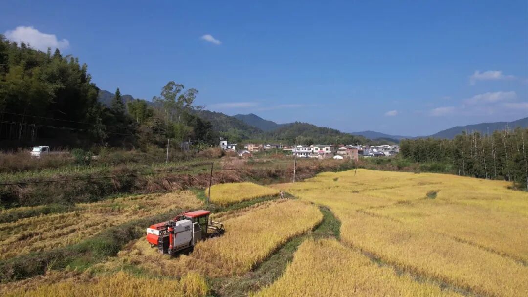 在东源县锡场镇林禾村,稻浪随风起伏,沉甸甸的穗头垂坠,颗粒饱满。收割机在稻田中穿梭往返,割稻、粉碎稻秆、装车等工序一气呵成,金色稻田绘出农村好“丰”景。