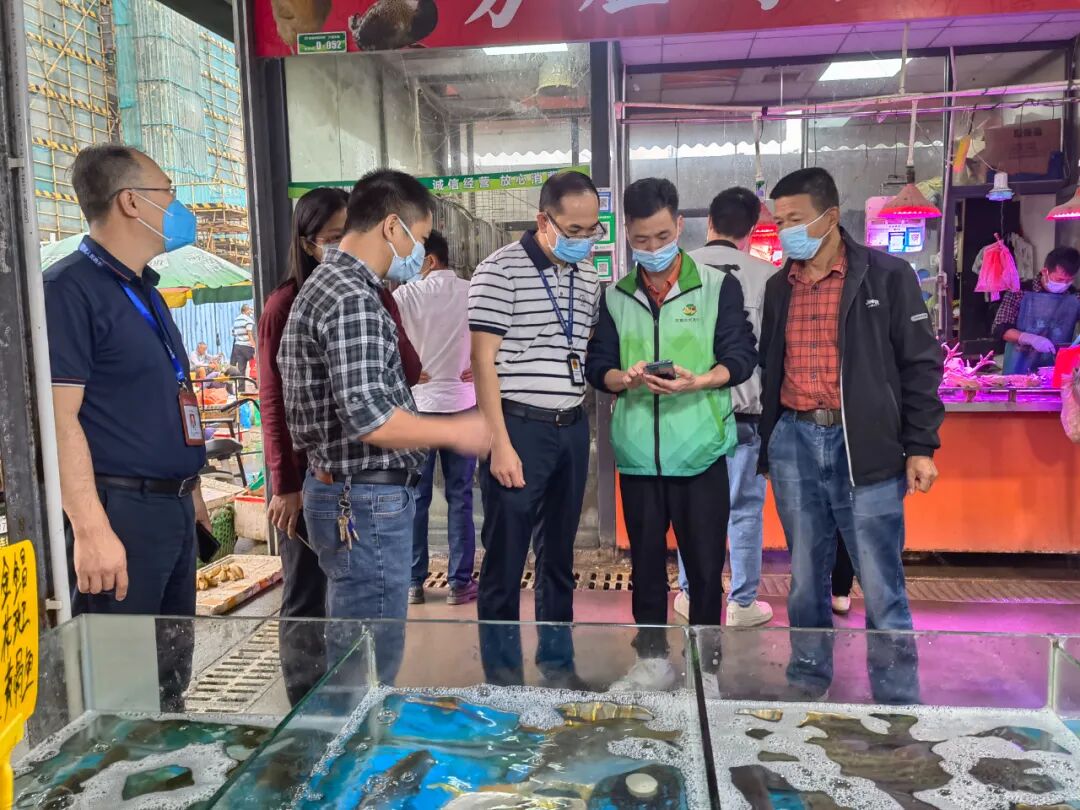 昨日(11月26日),南海区市场监管局组成7个督导组,分头对7个镇(街道)的农贸市场疫情防控工作情况开展督导检查,重点对农产品批发市场、农贸市场进行暗访巡查,就是否落实“进门五件事”、从业人员是否佩戴口罩手套防护用具、定期进行核酸检测等疫情防控措施落实情况进行监督检查,现场督导经营者整改。