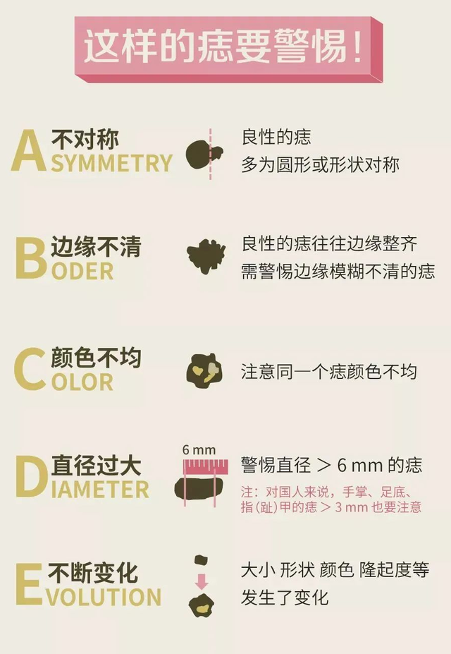 绝大多数情况下,痣都乖乖地躺在那儿,最多也就是影响美观。它也有潜在的危险,那就是癌变。
