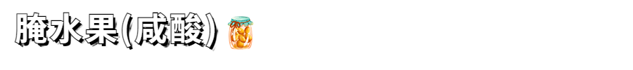 将水果切成块状或条状,加以白醋腌制,吃起来酸咸可口,口感爽脆。腌芒果、腌黄瓜、腌木瓜、腌李子……都是广州人的童年记忆。