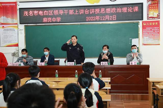 12月2日下午,电白区副区长、区公安分局党委书记、局长叶富山走进麻岗中学多功能会议室,为广大师生讲授了一堂别开生面的专题思政课。