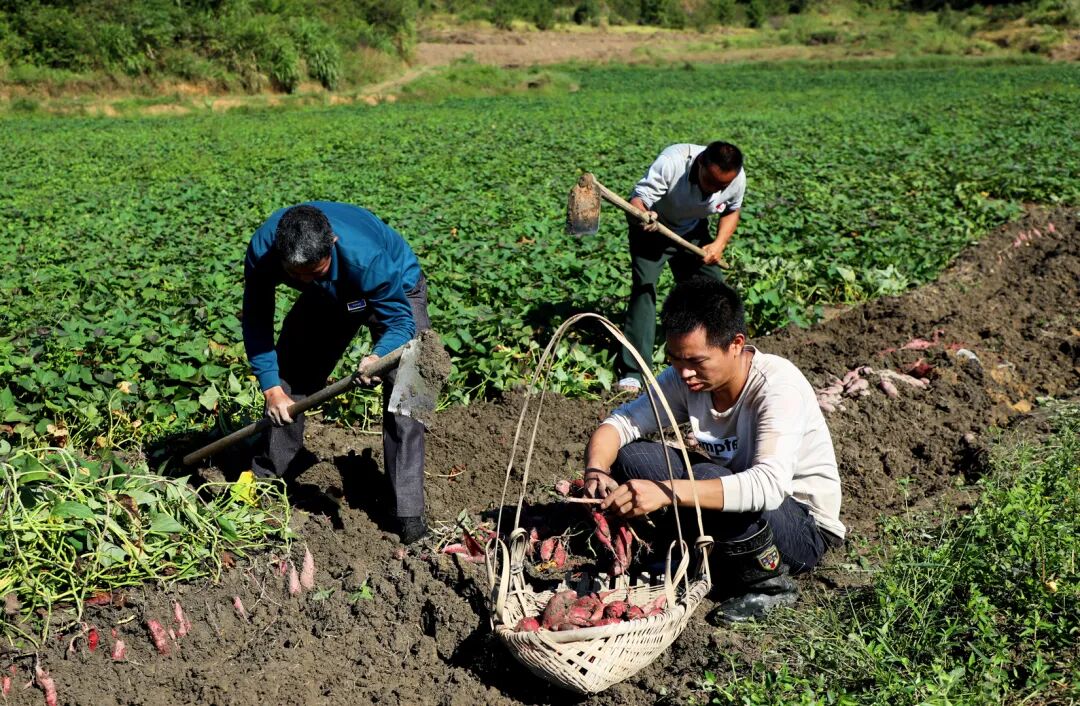 村民们忙着收获成熟的红薯