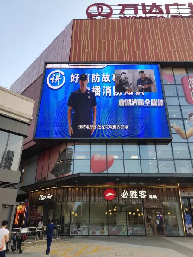 “请将电动车放在充电棚内充电。”“手机充电要避开哪些火灾隐患?”肇庆鼎湖万达广场户外LED屏,每天都滚动播放通俗易懂的本地消防宣传片,让消防安全知识深入人心。