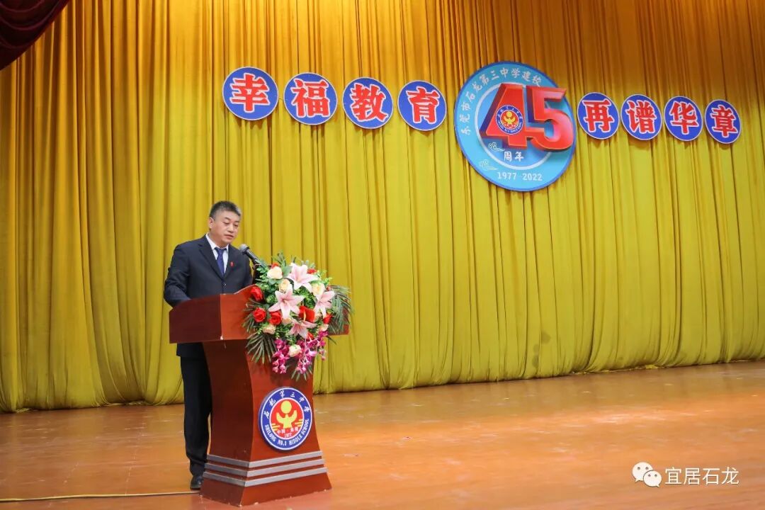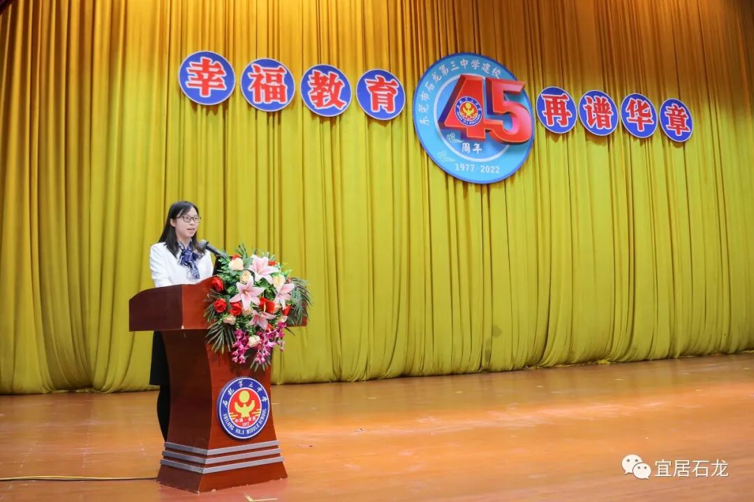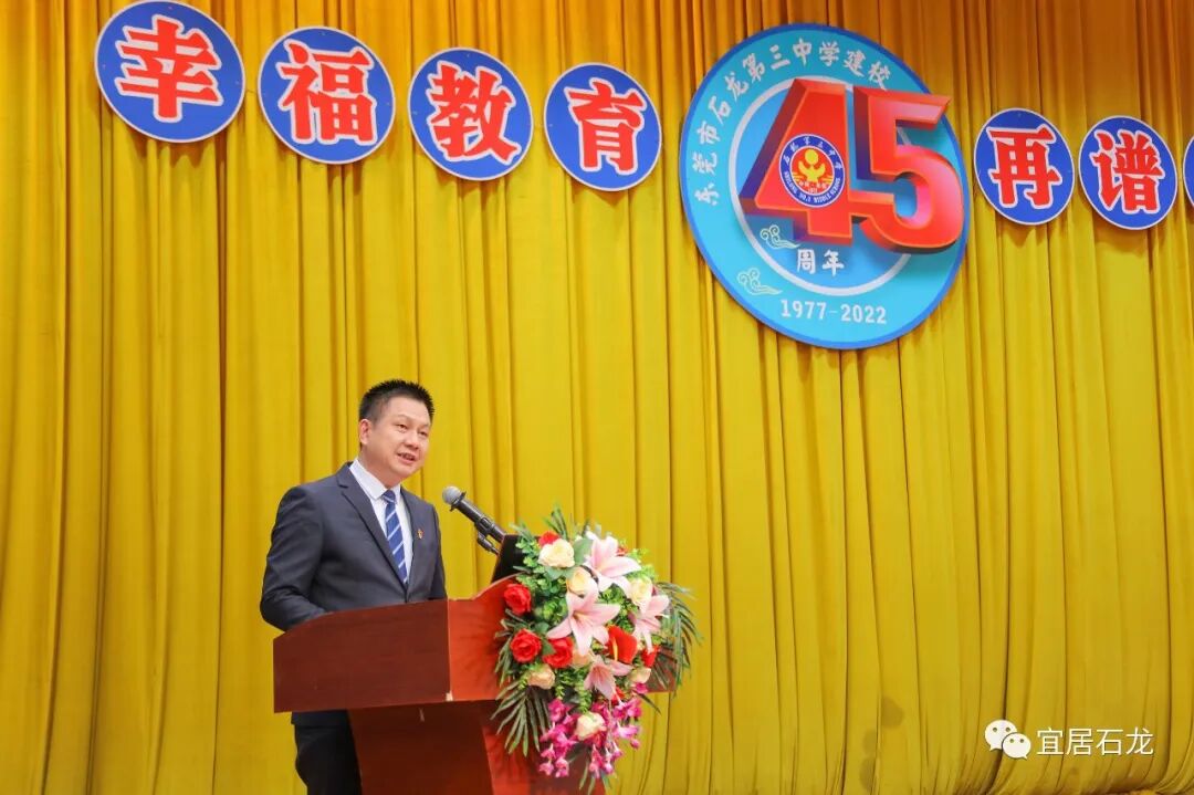 石龙三中校长杨森林向师生们回顾了学校45年来的发展历程和取得的成就,并向所有为三中发展付出过心血、作出过贡献的全体师生,向所有关心、爱护、帮助和支持学校发展的社会各界人士致以诚挚的感谢。杨森林表示,展望未来,石龙三中将秉承优秀传统,踔厉奋发,勇毅前行,加快推进高质量发展,致力从品牌学校办成优质名校,朝着“国内立项目,省内争上游,市内创一流”这一新的宏伟目标迈进。他希望全体师生继续拼搏努力,为三中实现“办一所成就幸福人生的学校”的目标而不懈努力。